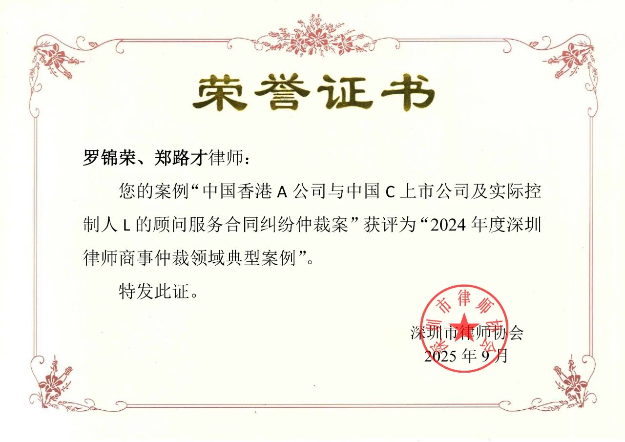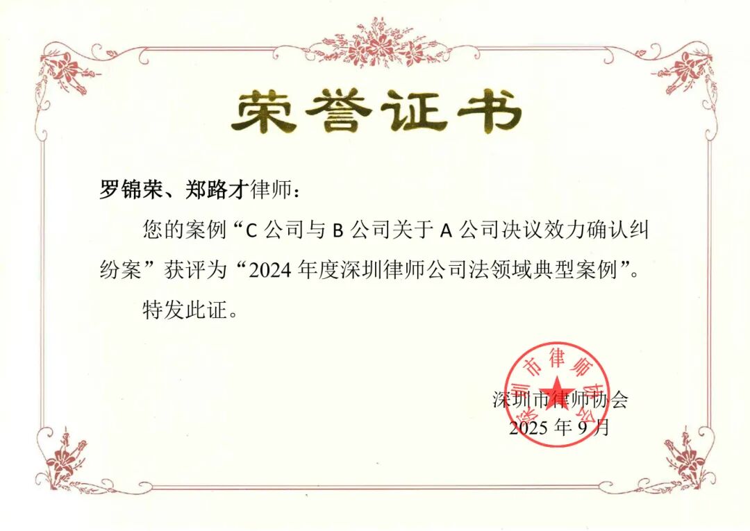 为充分发挥典型案例在律师实务中的示范引领作用,提升律师专业水平与研究能力,推动深圳律师行业高质量发展,深圳市律师协会开展了2024年度深圳律师业务典型案例评选工作。青狮云岸律师事务所主任罗锦荣律师团队,合伙人刘荣宗律师团队代理的多起案件入选名单。